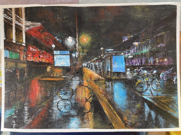 オンライン絵画教室もスタート!雨の風景画&地元の風景画をアクリル絵の具絵画教室で